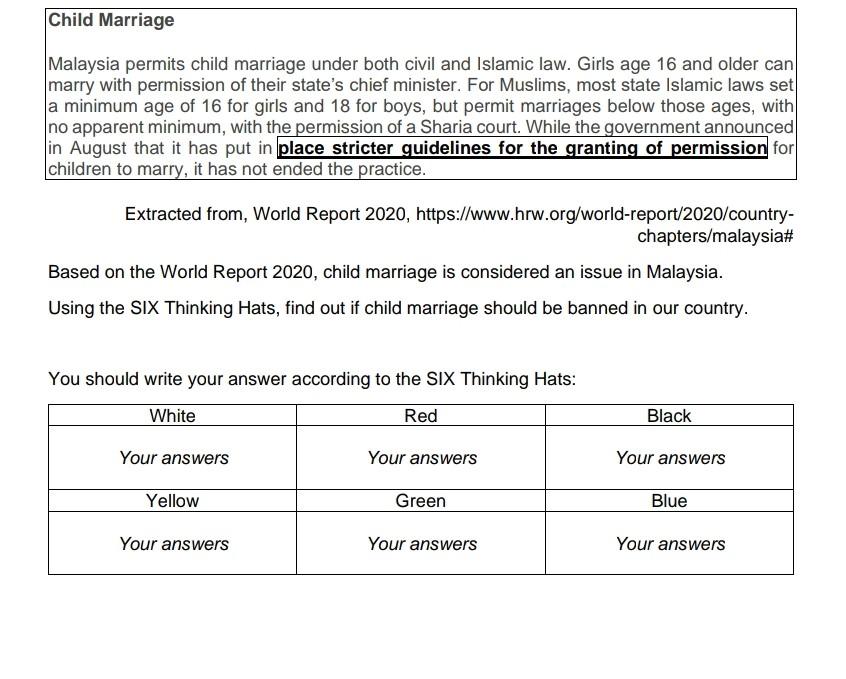 Solved Child Marriage Malaysia Permits Child Marriage Under Chegg Com